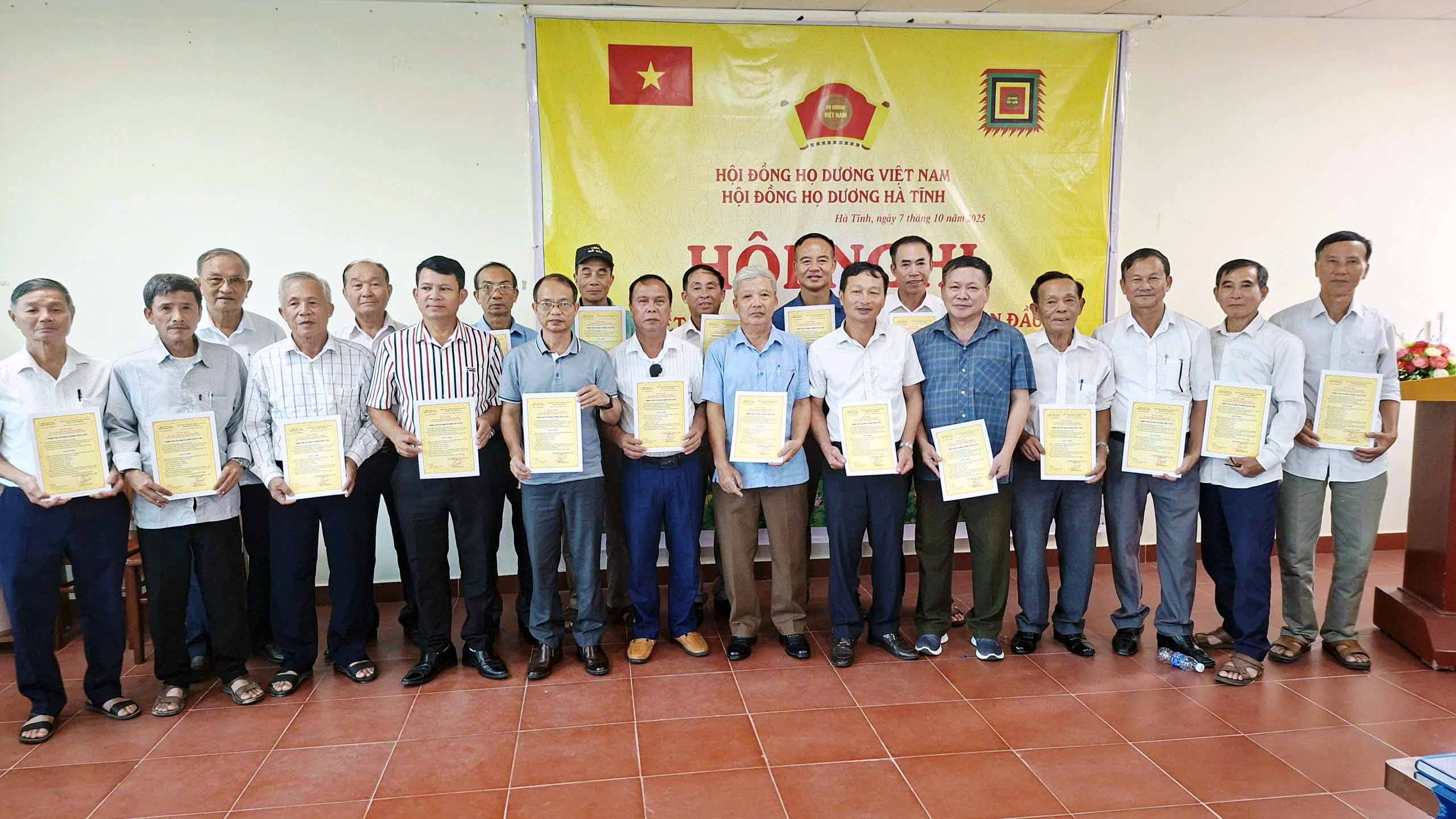Chủ tịch HĐHD các phường, xã của Họ Dương Hà Tĩnh nhận quyết định thành lập HĐHD cơ sở