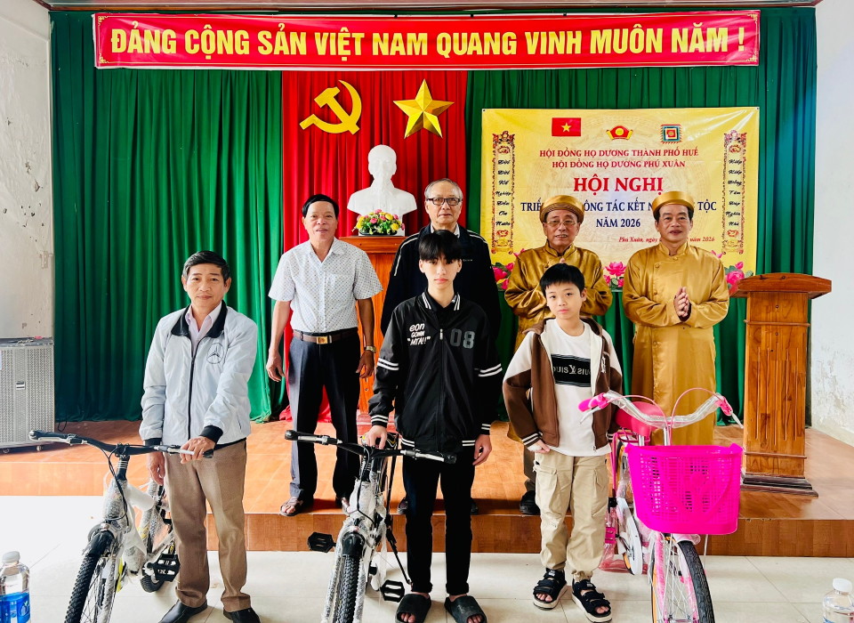 Tại hội nghị, HĐHD Phú Xuân cũng đã tiến hành trao bằng Mừng thọ cho cụ Dương Ngà 95 tuổi trú tại phường Hóa Châu, thành phố Huế và trao xe đạp của công ty TNHH SALLWAY và HĐHD tỉnh Hưng Yên tài trợ cho 3 cháu học sinh thuộc các phường mà HĐHD Phú Xuân phụ trách.