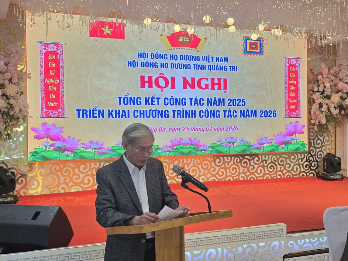 Hội nghị Tổng kết công tác năm 2025 và triển khai chương trình công tác năm 2026 của Hội đồng Họ Dương tỉnh Quảng Trị đã diễn ra thành công tốt đẹp, thể hiện tinh thần đoàn kết, trách nhiệm và quyết tâm đổi mới, hướng tới mục tiêu xây dựng dòng Họ Dương ngày càng vững mạnh, phát triển bền vững, xứng đáng với truyền thống và niềm tin của các thế hệ con cháu.